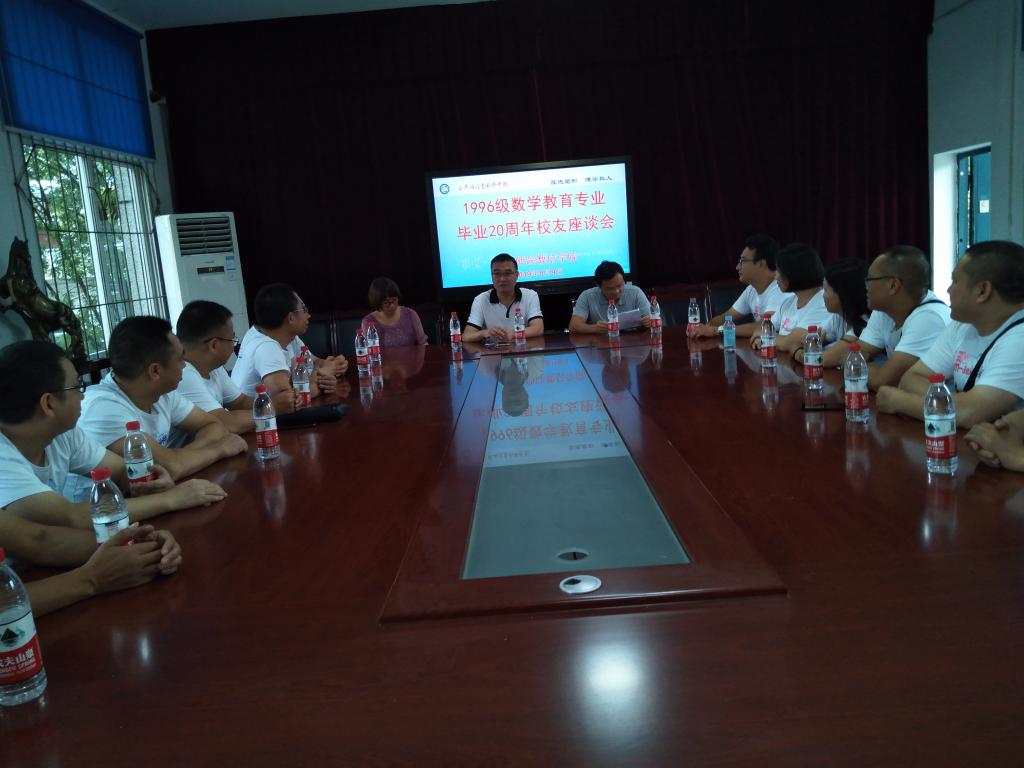 本网讯 (文、图/陈红君) 8月9日,数信学院在学院会议室举办了96级数学教育专业校友毕业20周年座谈会。学院党总支书记余德刚,副院长李木华、屈小兵等,96级数学教育专业校友20多人参加了座谈会。座谈会由校友李波漾主持。