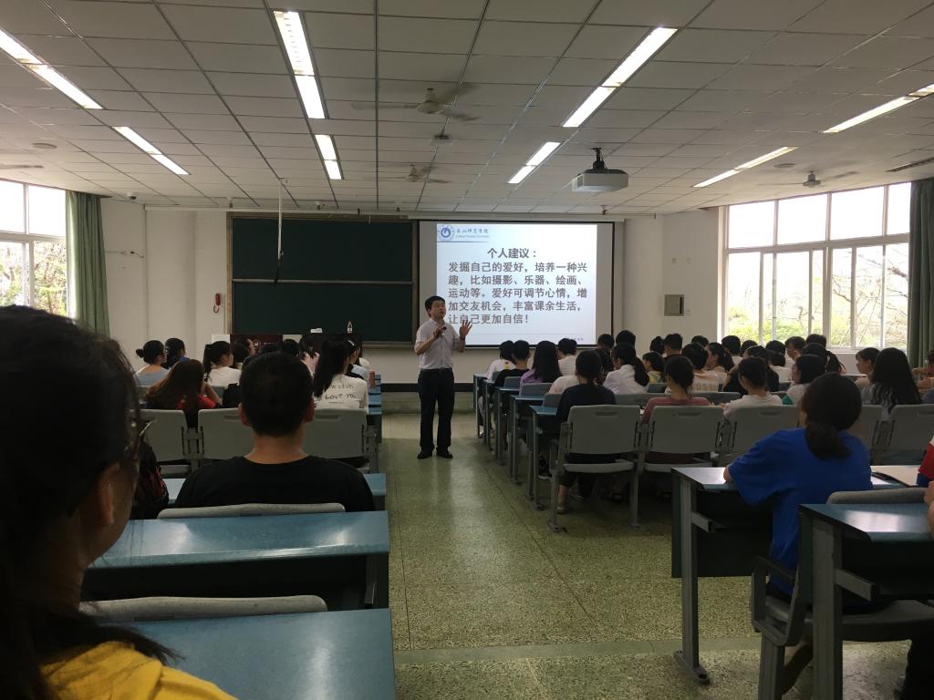 首先,校友进行了自我介绍,分享了自己的人生阅历,并向同学们讲述了对大学的基本认识,强调了大学在人生中的地位,剖析了大学和高中的异同,增进了同学们对大学及大学生活的了解;在自我认识环节,校友从“学会怎样与人相处”、“培养兴趣爱好”、“所学非所爱”、“恋爱与性”等六个方面纠正了大家对大学的认识,引导同学们正确对待大学生活;最后,校友给同学们的大学生活提出了十个建议,涉及生活、学习、品德、理想等方面,并希望大家认真践行以上建议,充实、愉快的度过四年的大学生活。
