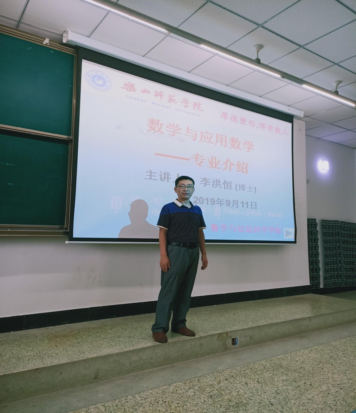 本网讯 (文、图/李洪恒) 9月11日上午,李洪恒博士在行知楼225教室面向2019级数学与应用数学专业新生进行了专业介绍讲座。