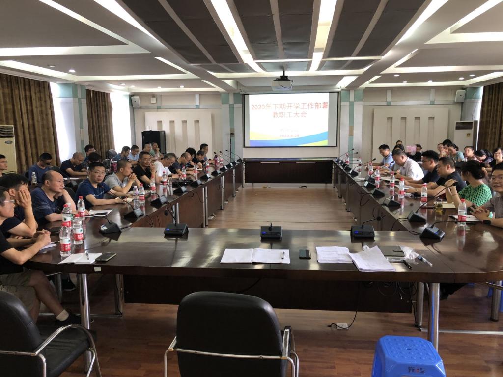 本网讯(文、图/陈红君) 8月28日上午,数理学院在学校网络会议室召开教职工大会,安排2020年下期开学工作。学院领导班子成员、教职工参加了会议。