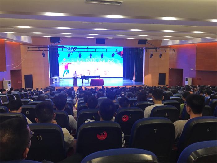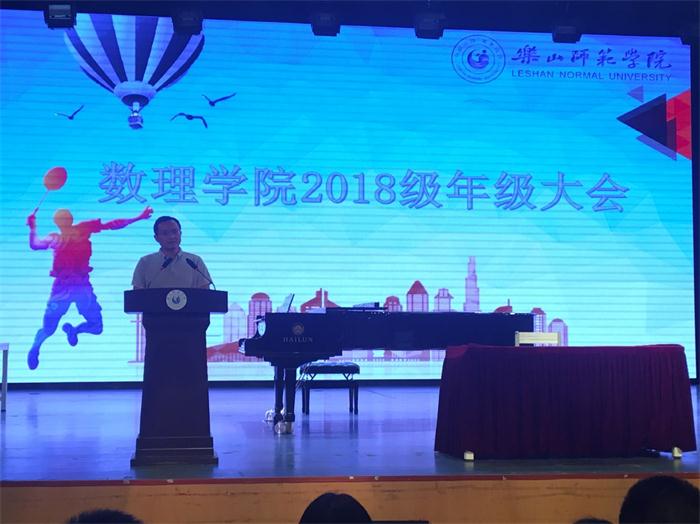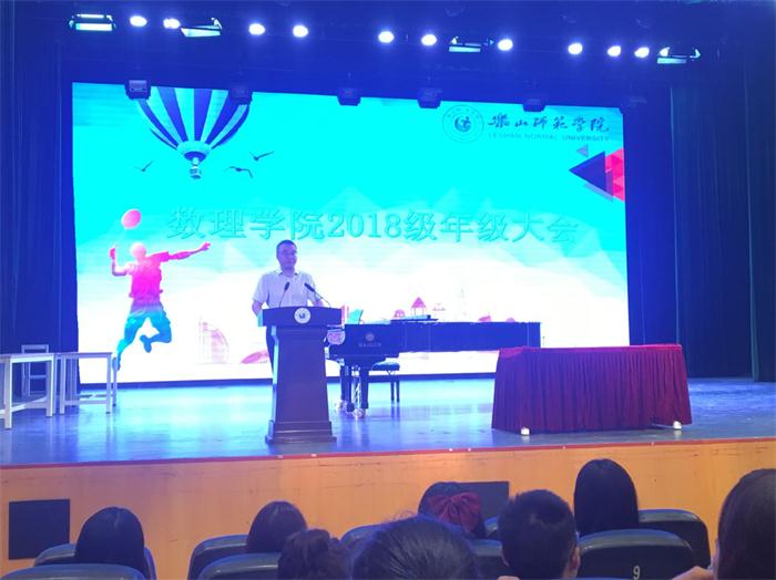 本网讯(文、图/刘洁鑫)2020年9月7日,数理学院在实训楼多功能厅召开2018级学生新学期的第一次年级大会,学院党总支书记余德刚、主持工作副院长屈小兵及443名2018级学生参加了此次大会,会议由学生科长陈盈舟主持。