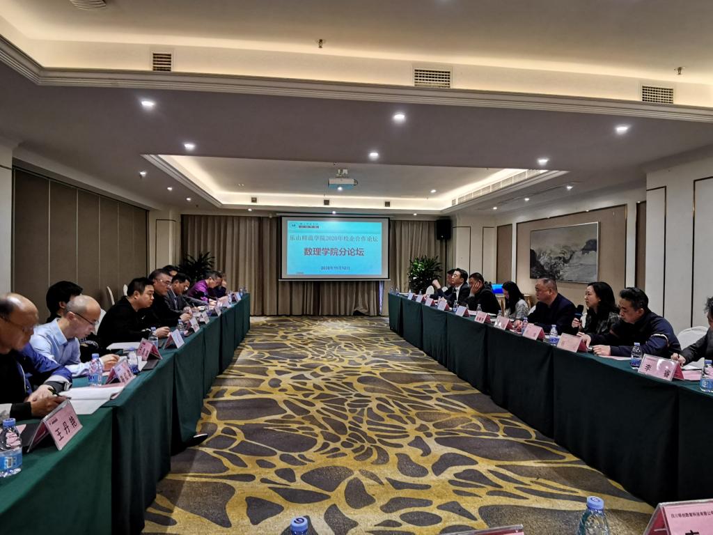 本网讯(文/陈红君,图/王丹艳) 11月12日下午,乐山师范学院校企合作论坛数理学院分论坛在佛莱雅酒店举行。乐山三江农商行、宏信证券峨眉山营业部、瑞达期货乐山营业部等银行、证券、期货类企业,四川众邦物流有限公司、四川德生数字科技有限公司、四川领创数智科技有限公司等物流、科技类公司的董事长、总经理,以及部门经理、技术总监等代表;学院党总支书记余德刚、主持工作副院长屈小兵、副院长黄凯、院长助理孙海,金融数学系主任于恩锋、应用统计学系主任高仕龙、信息与计算科学系主任贾礼平等人员参加了论坛活动。论坛由黄凯主持。