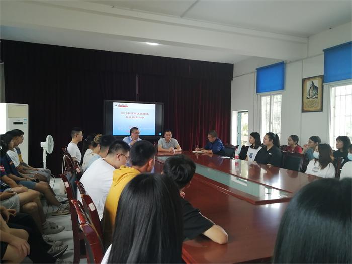 本网讯(文、图/陈盈舟)8月29日下午,数理学院在博雅楼二楼会议室召开2021年秋季顶岗支教学生出征前教育大会,党总支书记余德刚、院长屈小兵、学生科长陈盈舟以及64名将赴雷波县、布拖县、美姑县、峨边、马边、沐川县等地顶岗支教同学参加大会,会议由陈盈舟主持。