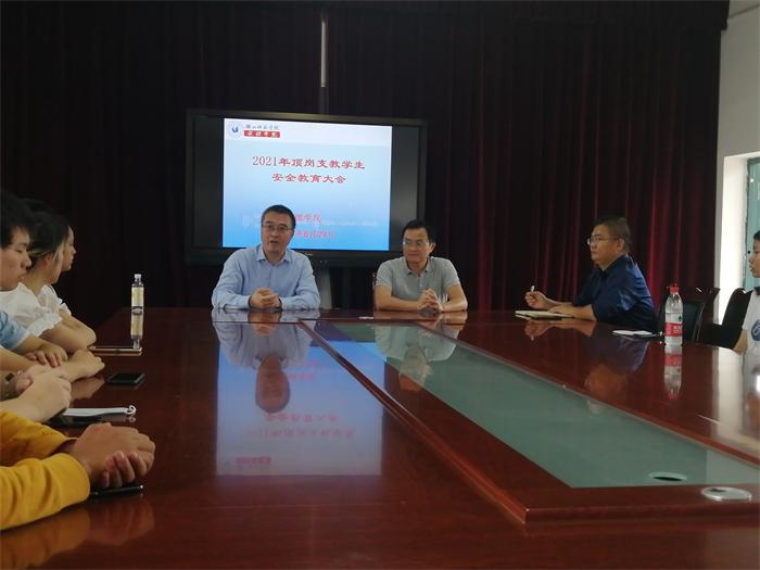 会上,余书记对本次顶岗支教的同学提了3点要求:一是学习党的民族政策,尊重少数民族风俗,促进民族团结;二是遵守教师职业规范和实习纪律,保护好人身安全;三是教学过程中,对学生要做到爱心、细心、耐心,促进学生发展。随后,屈院长讲到,目前大家具有支教教师和大学学生两重身份,不仅要做好乡村振兴的参与者,也要在工作中不断提高自身的教师技能,加强与毕业论文指导老师的沟通,按时高质量完成毕业论文工作,顺利毕业。